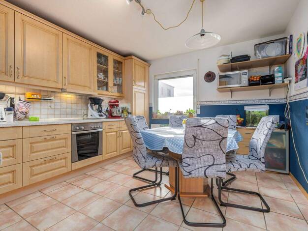 Dieses attraktive, freistehende Niedrigenergiehaus (Baujahr 2002), mit pflegeleichter Kunststoffputz-Fassade, hat 5 Zimmer mit einer Wohnfläche von ca. 136 m². Eine neue Viessmann-Therme (2023) sowie...