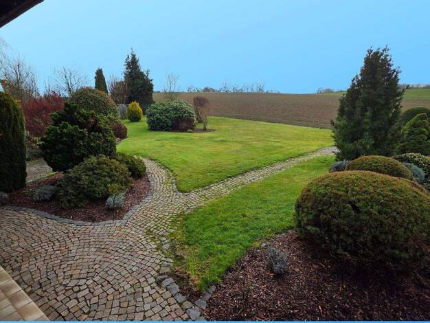 Das durch eine dichte Hecke eingefriedete Grundstück verleiht der mit 260 m² Wohnfläche großen, in den Hang gebauten Immobilie ein hohes Maß an Privatsphäre. Der nach Süden ausgerichtete Garten erstr...