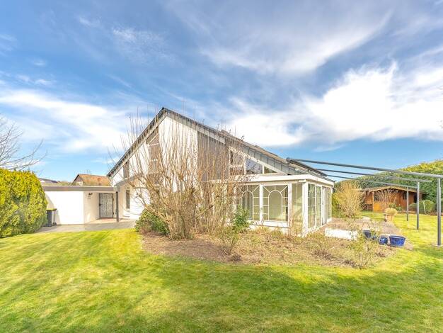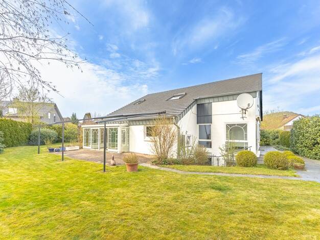 Dieses besondere Einfamilienhaus vereint markante Architektur mit durchdachter Funktionalität. Großzügige Fensterflächen und ein lichtdurchfluteter Wintergarten verleihen dem Haus einen unverwechselb...