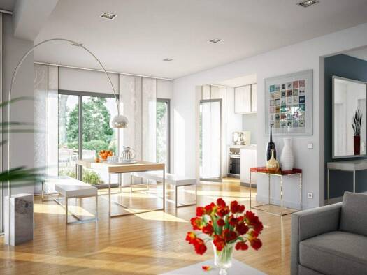 Das Design 10.2 steht für modernes Wohnen mit Charakter. Auf 140 m² verbindet sie Design und Alltag auf harmonische Weise. Der offene Wohn- und Essbereich bildet das Herzstück - hell, großzügig und m...