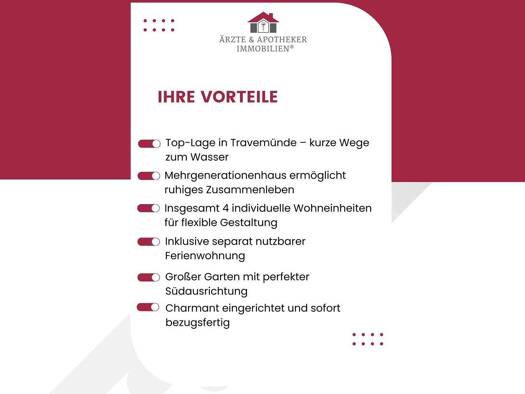 Entdecken Sie dieses außergewöhnliche Wohnensemble in einer der begehrtesten Lagen von Travemünde - ideal als großzügiges Einfamilienhaus für mehrere Generationen, verbunden mit der Option, eine voll...