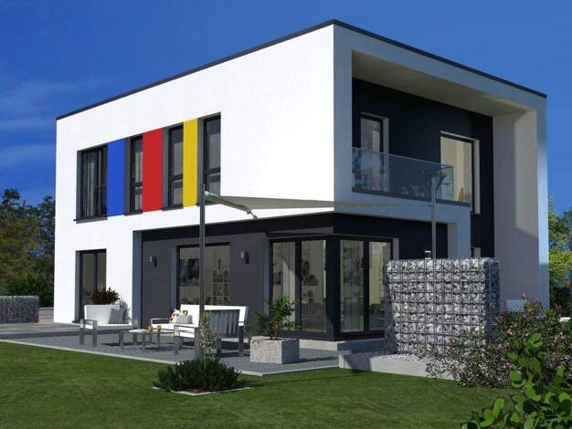 Schlichte Eleganz gepaart mit einem durchdachten Raumkonzept - das zeichnet das Einfamilienhaus Design 9.2 aus. Die geradlinige Architektur wird noch unterstrichen durch die zweifarbige Fassadengesta...