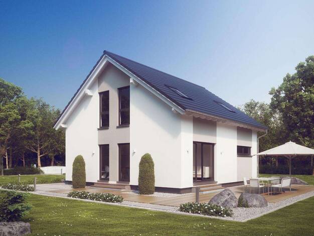 Dieses moderne Einfamilienhaus bietet auf 113 m² eine durchdachte Raumaufteilung auf zwei Etagen. Im Erdgeschoss besticht das lichtdurchflutete Wohnzimmer mit Gartenzugang, während das Dachgeschoss i...