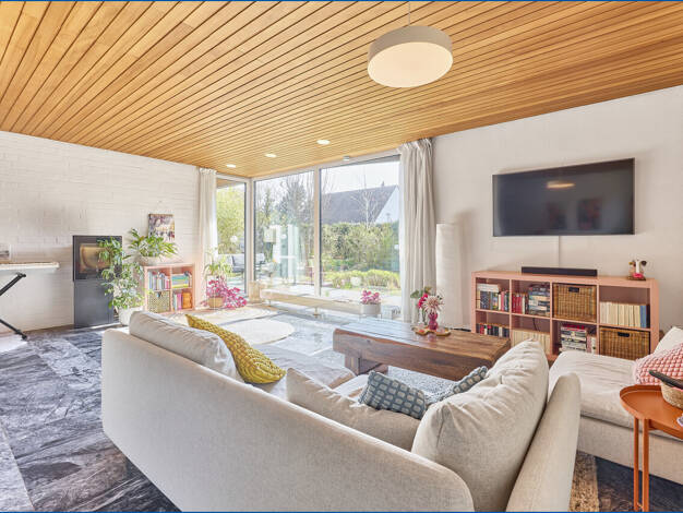 Dieses außergewöhnliche Architektenhaus in Bungalowbauweise vereint großzügiges Wohnen, eine besondere Architektur und ein attraktives Freizeitangebot unter einem Dach. Mit einer Wohnfläche von ca. 2...