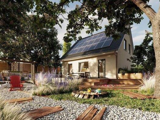 Das 1,5-geschossige Aktionshaus ist ein Fertighaus mit 5 Zimmern und bietet auf 120 m² Wohnfläche ausreichend Platz für jeden Bewohner. Über die gesamte Hausbreite erstreckt sich der Wohn-, Ess- und ...