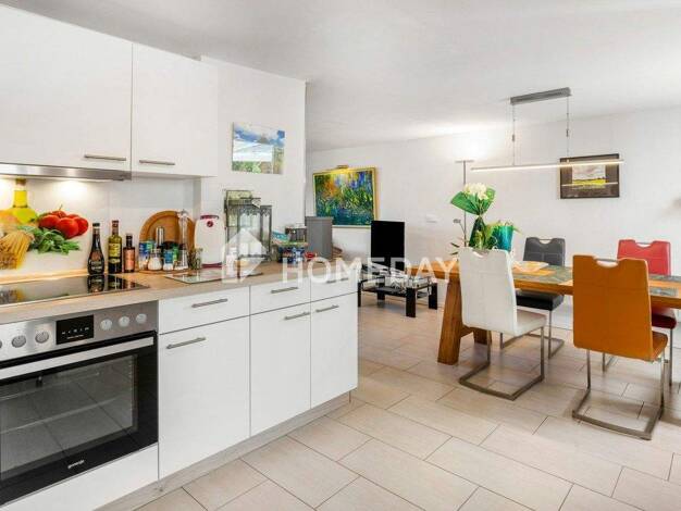 Das großzügige Einfamilienhaus besticht durch die modernen, großflächigen Fenster, die viel Licht ins Innere lassen und zum Verweilen mit Familie und Freunden einladen. Wohnen, Essen und Kochen bilde...