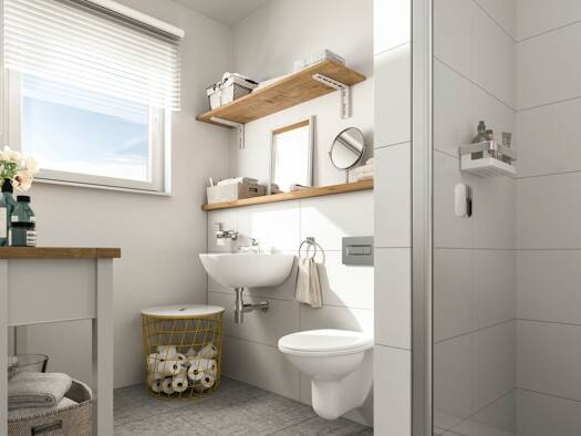 Das Flair 113 bietet alles, was ein Massivhaus gemütlich macht. Im Erdgeschoss betreten Sie ein geräumiges Wohn- und Esszimmer, eine Küche mit genügend Freiraum, ein Gäste-WC und einen Hauswirtschaft...