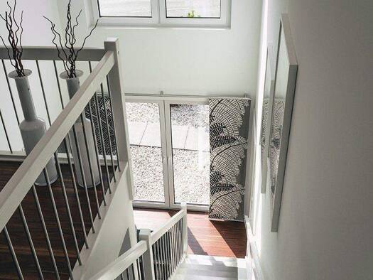 Das 2007 erbaute Stadthaus in unmittelbarer Rheinnähe liegt in einer gefragten Urbanization. Ausgefallene architektonische Lösungen, viel Licht und Privatsphäre machen das Wohnen zum Erlebnis. Zwei T...