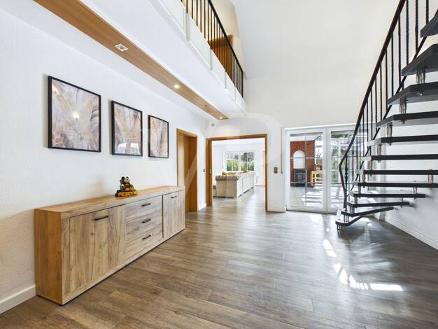 Dieses vielseitige Raumangebot lässt keine Wünsche offen und bietet auf ca. 282 m² Wohn- und Nutzfläche Platz für die ganze Familie. Über die Auffahrt gelangen Sie direkt zum Haupteingang der Immobil...