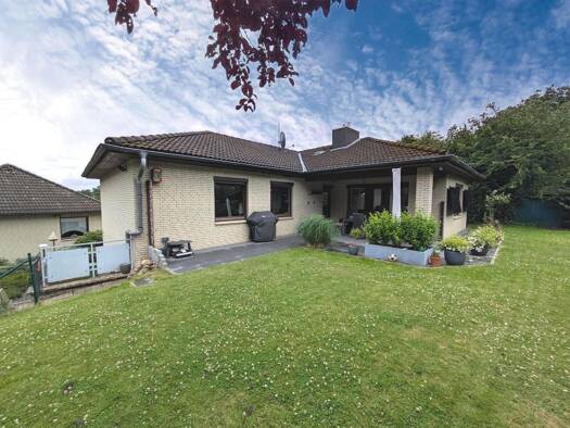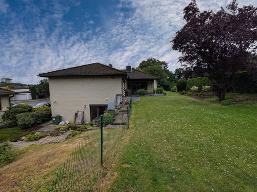 Dieses schicke Einfamilienhaus mit Einliegerwohnung wurde 1979 in Massivbauweise auf einem rund 733m² großen Hanggrundstück erbaut und seither in vielen Bereichen modernisiert. Aufgrund der Hanglage ...