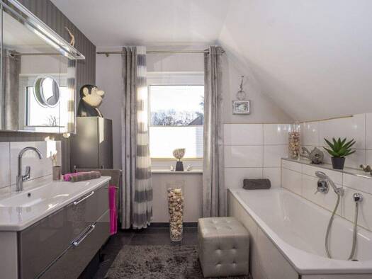Das großzügige Haus mit dem schönen Satteldach überzeugt mit viel Platz und einem variablen Grundriss. Das Wohnzimmer schenkt genügend Raum zur Erholung, die sich anfügende Essecke wird schnell zum g...