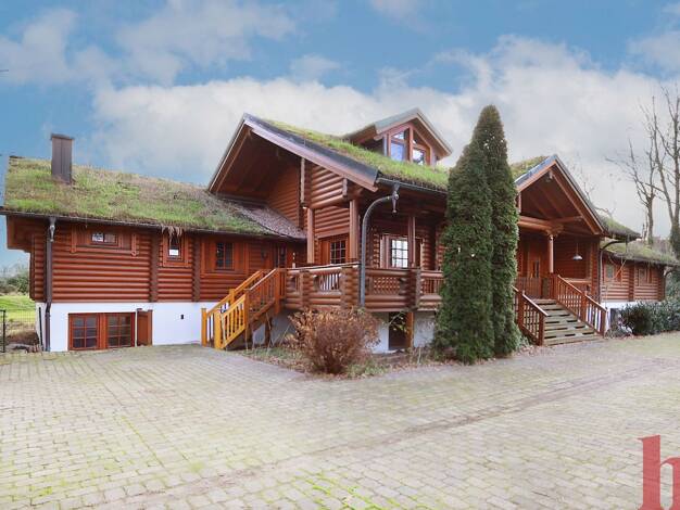 Wohnen und Arbeiten in perfekter Harmonie: Wir freuen uns, Ihnen dieses außergewöhnliche Anwesen präsentieren zu dürfen. Es besteht aus einem massiven Blockhaus mit umlaufender Veranda, einer wärmeis...