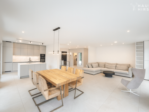 Beim Betreten des Hauses öffnet sich ein harmonisch gestalteter, offener Wohnbereich, der sofort ein Gefühl von Großzügigkeit und Behaglichkeit vermittelt. Der Eingangsbereich führt direkt in den lic...