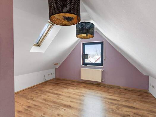 Das großzügige Haus mit dem schönen Satteldach überzeugt mit viel Platz und einem variablen Grundriss. Das Wohnzimmer schenkt genügend Raum zur Erholung, die sich anfügende Essecke wird schnell zum g...