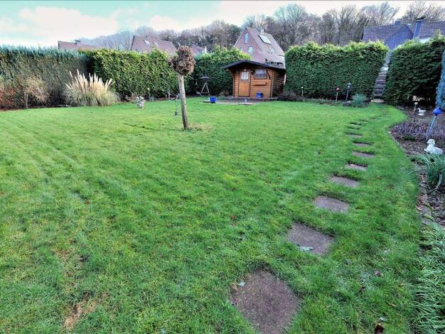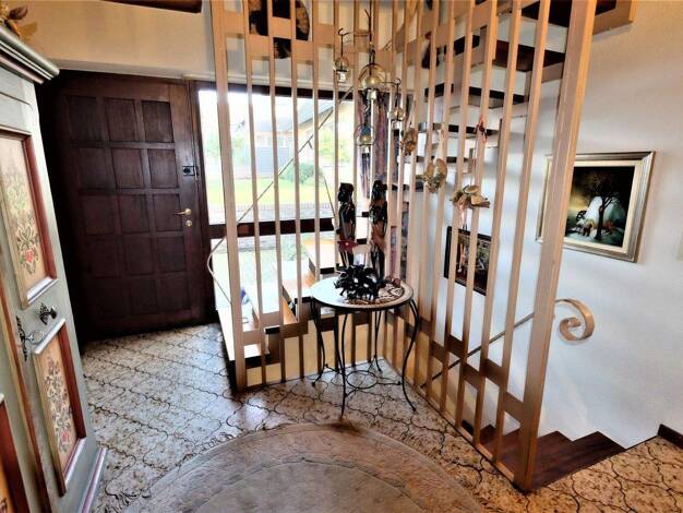 Das Haus wurde 1977 errichtet und ist unter anderem ausgestattet mit Fensterrahmen aus Holz, doppelverglasten Fenstern und Rollläden. Im geräumigen Eingangsbereich befindet sich gleich links der Eing...