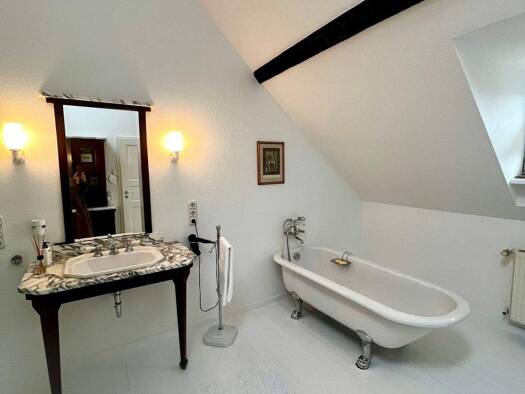 Dieses außergewöhnliche Fachwerkhaus, dessen Ursprünge um ca. 1820 liegen (das genaue Baujahr ist nicht bekannt), wurde zwischen 1990 und 2009 umfassend mit viel Gespür für Architektur und Ästhetik s...