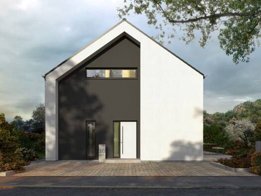 Modernes projektiertes Fertighaus mit ca. 135 m² Wohnfläche 5 Zimmer auf zwei optimal geplanten Etagen Perfekte Kombination aus Wohnen, Arbeiten & Familienleben Offener, heller Wohnbereich im Erd...