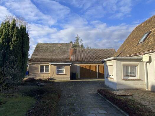 Ein einstöckiges Einfamilienhaus mit freistehender Lage, einem kleinen Keller und einem ausgebauten Dachgeschoss. Die Bruttogrundfläche beträgt 192 Quadratmeter und es verfügt über ein Nebengebäude m...
