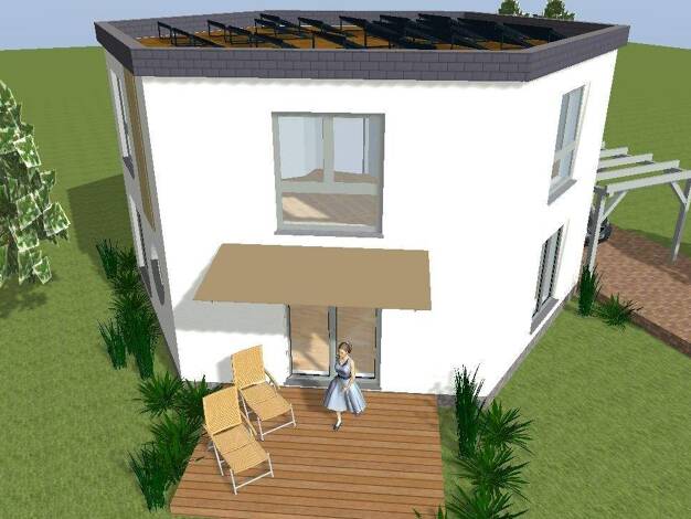 Ein Hexagon - Haus als KfW 40 Haus mit hoher KfW - Förderung durch die energetisch optimierte Gestaltung des Baukörpers. 2 - geschossige Massivbauweise mit wärmegedämmten 36,5 cm Ziegelmauerwerk. WIC...