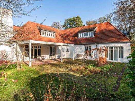 Dieses Haus bietet auf ca. 220 m² Wohnfläche verteilt auf zwei Etagen insgesamt sieben Zimmer. Die Immobilie befindet sich in schöner Lage im Villenpark Groß Glienicke und ist von einem gepflegten Ga...