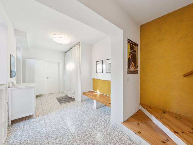 Dieses besondere Wohnhaus vereint modernes Wohnen, klare Architektur und eine angenehm private Atmosphäre in einem geschützten Innenhof. Hinter der straßenseitigen Bebauung eröffnet sich ein überrasc...