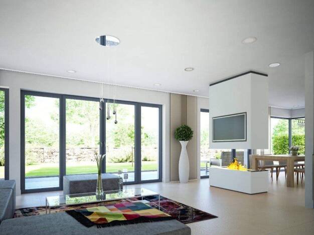 Wenn Sie die Diele des Architektenhauses Allea betreten, haben Sie Blick in den großen Wohn- und Essbereich. Durch bodentiefe Schiebeelemente ist dieser Bereich lichtdurchflutet und Sie können sowohl...