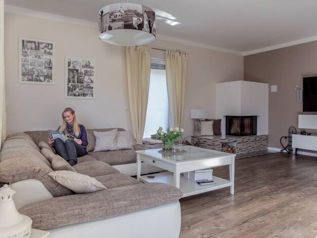 Das Haus Flair - ein ideales Zuhause für die Familie: Ein Blickfang sind die bodentiefen Fenster, die den Wohnbereich mit viel Licht durchfluten. Hell, gemütlich und weitläufig - genügend Raum zum En...
