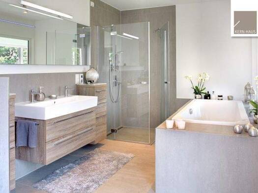 Die zeitlos moderne Stadtvilla Centro von Kern-Haus ist mit allem Wohnkomfort ausgestattet: helle, großzügige Räume bestimmen die Architektur. Auf ebener Erde befinden sich Küche, Wohn/Esszimmer und ...