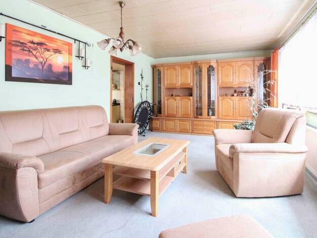 Eingeschossiges, teilweise unterkellertes Einfamilienhaus mit ausgebautem Dachgeschoss und Wintergarten. Auf dem Grundstück befinden sich noch ein Scheunengebäude, dieses wird als Werkstatt, Garage u...