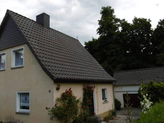Das Einfamilienhaus mit Nebengebäude bildet durch seine Anordnung einen geschützten Hofbereich. Hinter dem Nebengebäude liegt ein großer, gepflegter Garten, der viel Raum für Freizeit und Gartenarbei...