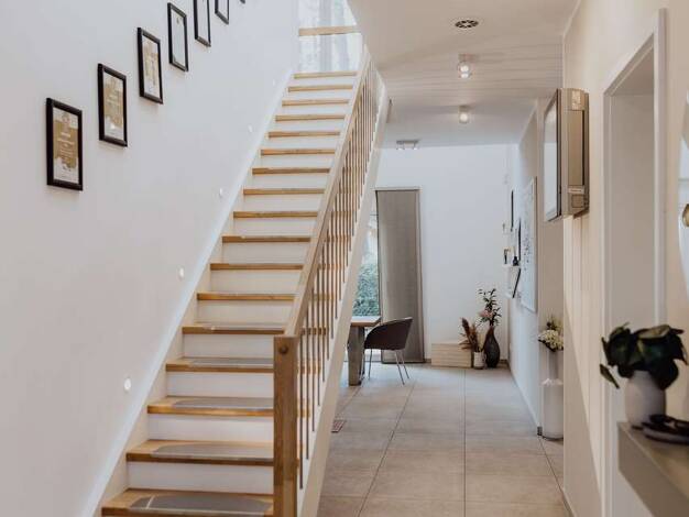 Drei Bäder auf drei Etagen schaffen besonderen Komfort und geben Ihrem Alltag eine angenehme Struktur. So starten alle entspannt in den Tag und genießen am Abend ihren eigenen Rückzugsbereich. Im Erd...