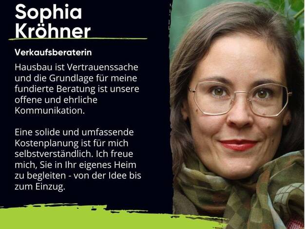 Gerne können wir in einem persönlichen Termin in unserem schönen Musterhauszentrum in Chemnitz alle Fragen zum Thema Hausbau klären. Ich berate Sie sehr gerne. Rufen Sie mich an! Ihre Sophia Kröhner ...