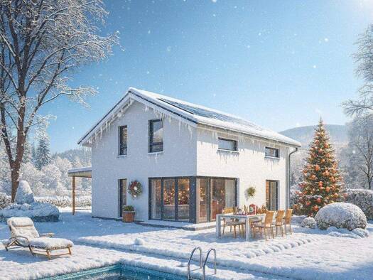Das Haus ist auf einem realen Baugrundstück geplant oder auf einem Grundstück in einer Planungsphase. Die Bilder zeigen ggf. Extras, die im Rahmen des Bebauungsplans noch geprüft werden müssen. Bitte...