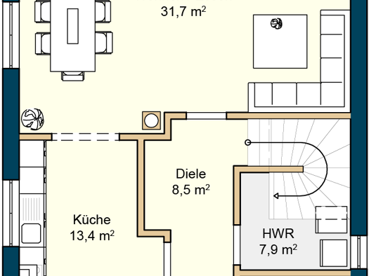 Das Familienhaus Vero überzeugt auf über 160 Quadratmetern durch die Großzügigkeit der Räume sowie seiner offenen Grundrissgestaltung im Wohnbereich: Die offene Küche und der Wohn- und Essbereich umf...