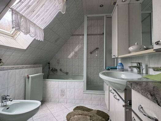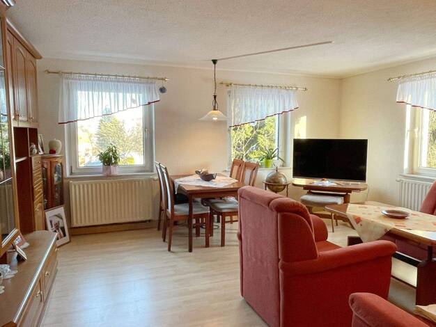 Ein kleines Häuschen, aber viel Raum... Geheizt wird hier über Gas (Therme 2019 gewechelt und stets gewartet). Die Kunststofffenster (doppeltverglast) stammen aus 1994 und sind alle mit Außenrollos v...
