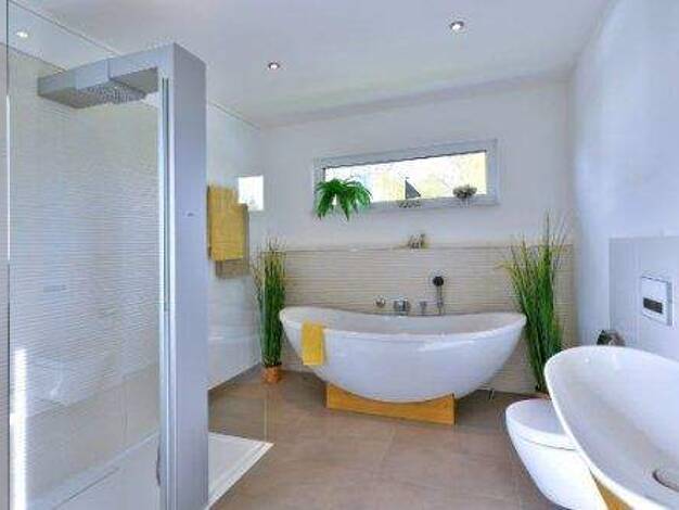 Dieses Haus ist ein Effizienzhaus. Mit der integrierten Lüftung und Kühlung haben Sie auch im Hochsommer immer ein angenehmes Raumklima. Es wird in der Ausstattungsstufe "Zur Ausstattung fertig" herg...