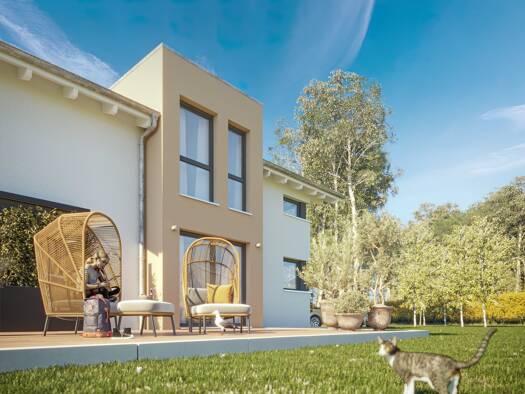 Hier trifft modernes Design auf clevere Raumaufteilung. Clever 2 bietet mit 136,07 m² großzügige Wohnbereiche, eine offene Küche und praktische Stauraumlösungen. Im Obergeschoss sorgen gut geschnitte...