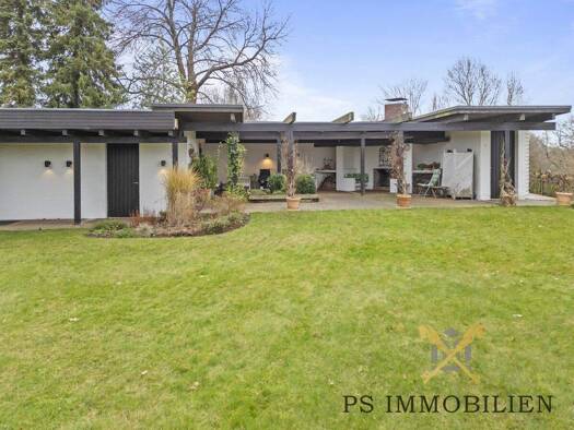 Willkommen in Ihrem zukünftigen Zuhause - ein außergewöhnlich großer Bungalow aus dem Jahr 1975, der mit viel Platz, durchdachter Raumaufteilung und einem einzigartigen Grundstückseingang überzeugt. ...