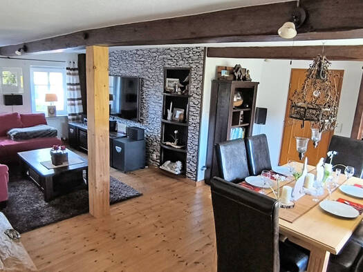 Die aktuelle interessante Raumgestaltung des Hauses lädt zum Wohlfühlen ein. Ein großer Wohn- und Esszimmerbereich mit Zugang zum etwas tiefer liegenden Kaminzimmer bietet eine offene Raumstruktur. V...
