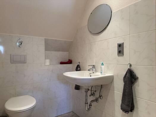 Das in 1963 massiv erbaute Einfamilienhaus wurde 2014-2016 im Erdgeschoss modernisiert und im Dachgeschoss wurde mit dem Ausbau begonnen. Und bedingt durch eine Trennung nicht zuende ausgebaut. Ein B...