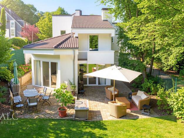 Der Weg nach Hause führt durch eine ruhige Sackgasse. Kaum Verkehr, viel Grün und eine gewachsene Nachbarschaft prägen das Umfeld. Bereits beim Ankommen wird deutlich, dass hier ein besonders gediege...