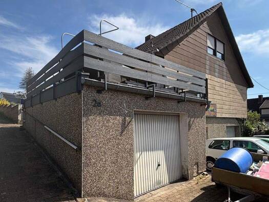 Das Haus wurde ca. 1960 auf einem 580 m² großen Grundstück errichtet. Früher war im vorderen Bereich des Erdgeschosses ein Edeka-Markt eingerichtet. Dadurch befindet sich die Eingangstür zum Wohnbere...