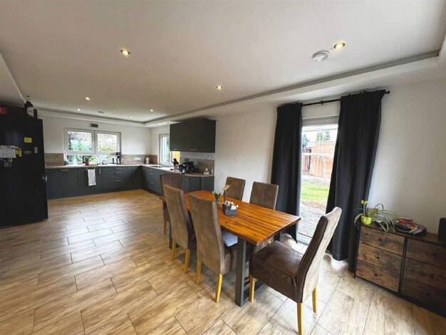 Das großzügige Einfamilienhaus besticht durch die modernen, großflächigen Fenster, die viel Licht ins Innere lassen und zum Verweilen mit Familie und Freunden einladen. Wohnen, Essen und Kochen bilde...