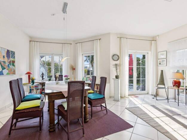Im Erdgeschoss dieses Einfamilienhauses empfängt Sie ein großzügiges und offenes Wohnzimmer, das nahtlos ins Esszimmer und anschließend in die Küche übergeht. Diese lichtdurchflutete Raumgestaltung s...