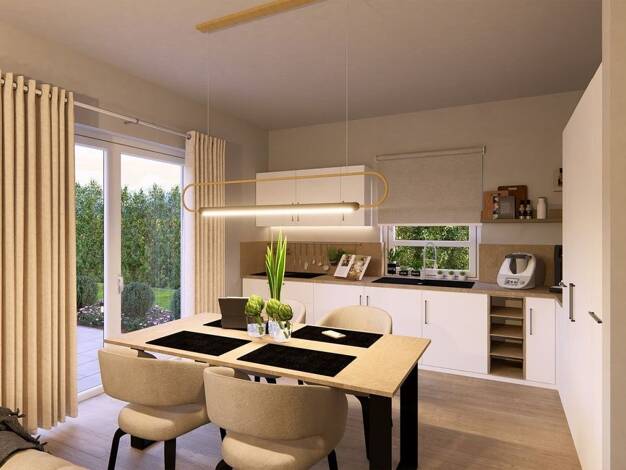 Das Design 10.2 steht für modernes Wohnen mit Charakter. Auf 140 m² verbindet sie Design und Alltag auf harmonische Weise. Der offene Wohn- und Essbereich bildet das Herzstück - hell, großzügig und m...