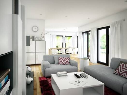 Das "Aura 125" überzeugt mit seiner cleveren Bauweise und flexiblen Gestaltungsmöglichkeiten. Dank seiner kompakten Außenmaße findet dieses Haus gerade auf kleinen und schmalen Grundstücken Platz. Se...