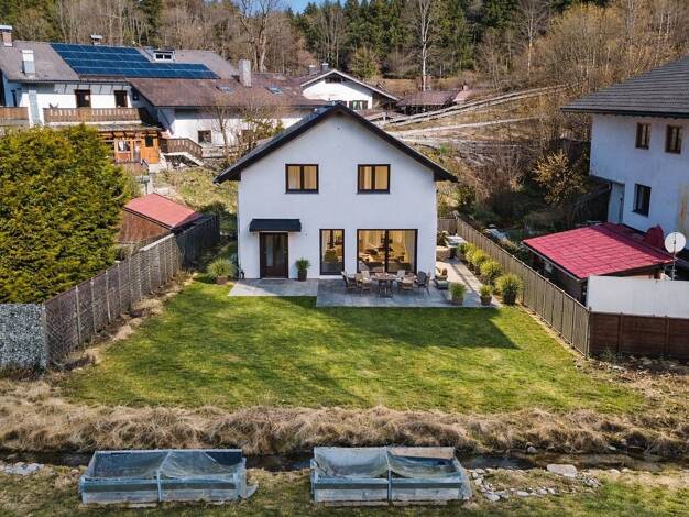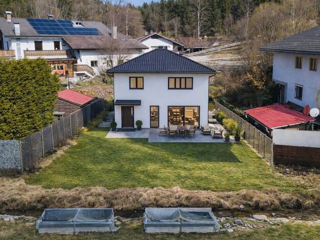 Objektnr: 1069327 Im malerischen Ortsteil Neuhaus entstand im Jahr 2023 dieses exklusive Einfamilienhaus, das höchsten Wohnansprüchen gerecht wird - eingebettet in die idyllische Voralpenlandschaft d...