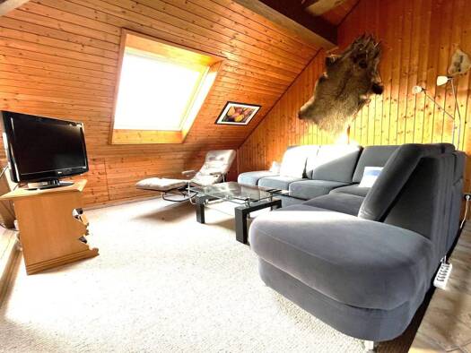 Ein Einfamilienhaus in Split-Level-Bauweise, bestehend aus einem Geschoss und einem Untergeschoss, mit ausgebautem Dachgeschoss und einer Wohnfläche von 179 m², sowie einer Doppelgarage, erbaut im Ja...