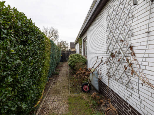 Der Bungalow aus dem Jahr 1977 besticht durch seine kompakte, ebenerdige Bauweise mit einer Wohnfläche von rund 83?m², die sich auf drei gut geschnittene Zimmer, eine separate Küche, ein Tageslicht-B...