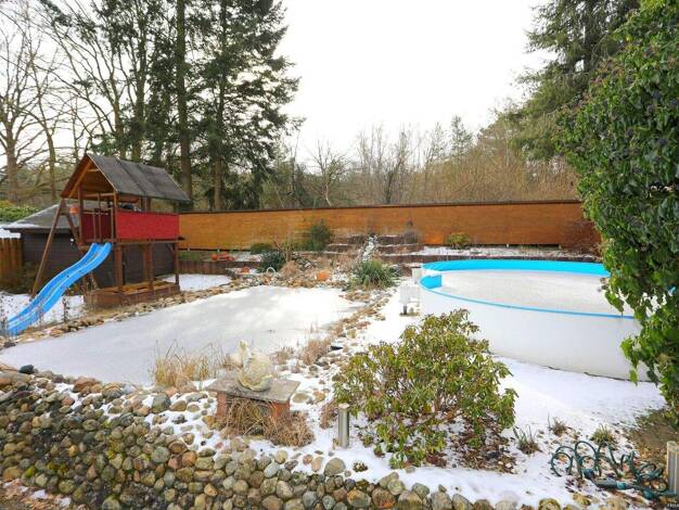 Beindruckendes Einfamilienhaus in Gifhorn-Süd mit vielen Extras und Modernisierungen. Wintergarten - Doppelgarage - Keller - Fußbodenheizung - Einbauküche - Pool - Teich - Sauna - Wohlfühlbad Das Ein...
